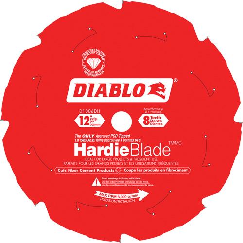 HardieBlade™ Cutting Saw Blade – 12″, 1″, 8, Fibre Cement, 10°, 0.087″, 0.063″, 6000