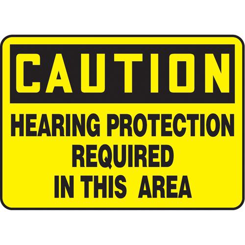 “Hearing Protection Required” Sign – Vinyl, Plastic, Aluminum, 10″, 14″, Adhesive, English, Personal Protection