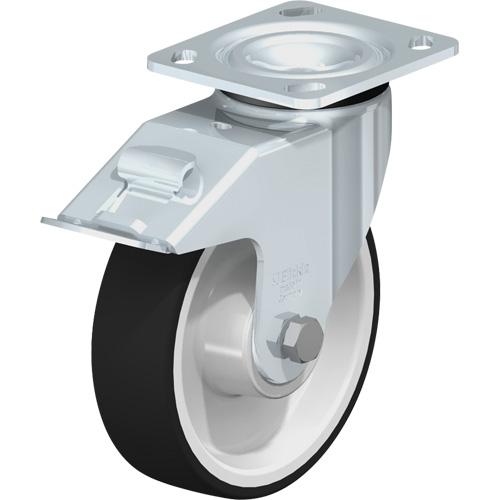 Heavy-Duty Kingpinless Caster – 6-5/16″ (160.3375 mm), 1210 lbs. (550 kg.), Thermoplastic Polyurethane, Swivel with Brake, Steel, 1-3/4″ (44.5 mm), 2-5/8″ x 3-5/8″ (67 mm x 92 mm) to 3″ x 3″ (76 mm x 76 mm)
