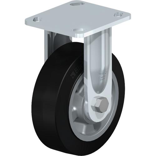 Heavy-Duty Kingpinless Caster – 6″ (152.4 mm), 660 lbs. (300 kg.), Rubber, Rigid, Steel, 2-1/8″ (54 mm), 2-5/8″ x 3-5/8″ (67 mm x 92 mm) to 3″ x 3″ (76 mm x 76 mm), 3/8″ (9.52 mm), 4″ x 4-1/2″ (102 mm x 114 mm)