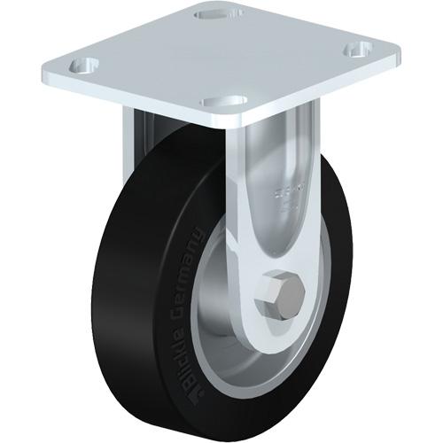 Heavy-Duty Kingpinless Caster – 5″ (127 mm), 550 lbs. (249.5 kg.), Rubber, Rigid, Steel, 1-9/16″ (40 mm), 2-5/8″ x 3-5/8″ (67 mm x 92 mm) to 3″ x 3″ (76 mm x 76 mm), 3/8″ (9.52 mm), 4″ x 4-1/2″ (102 mm x 114 mm)
