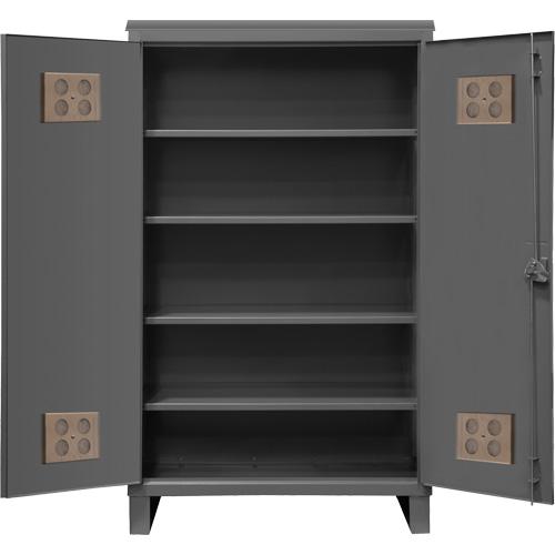 - Doors open 180 degrees and have 7 gauge leaf hinges to prevent sagging