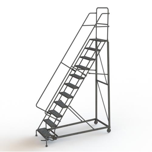 Heavy Duty Rolling Ladder – 11, 110″, 10″, 24″, Steel, Serrated, 24″, 83″, 34″, Yes
