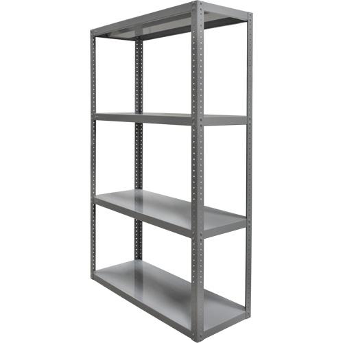 Heavy-Duty Shelving – Starter, 4, 3000 lbs., Steel, 60″, 18″, 72″, Bolted, Open, Grey, 1 Year Limited, 9000 lbs.