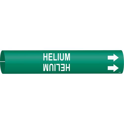 “Helium” Pipe Marker – Plastic, White on Green, 1-1/2″ – 2-3/8″, 7/8″, 7/8″, 3/4″, English, Snap-On