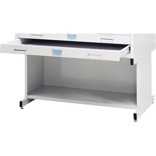 - Raises files 20" off the floor and raises top of file to a 36" level to provide work space