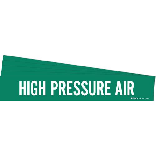 “High Pressure Air” Pipe Marker – Vinyl, White on Green, 2-1/2″ – 7-7/8″, 2-1/4″, 14″, 2″, English, Self-Adhesive