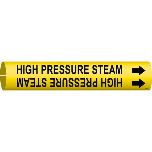“High Pressure Steam” Pipe Marker – Plastic, Black on Yellow, 4″ – 6″, 2-13/16″, 2-13/16″, 1-1/4″, English, Snap-On