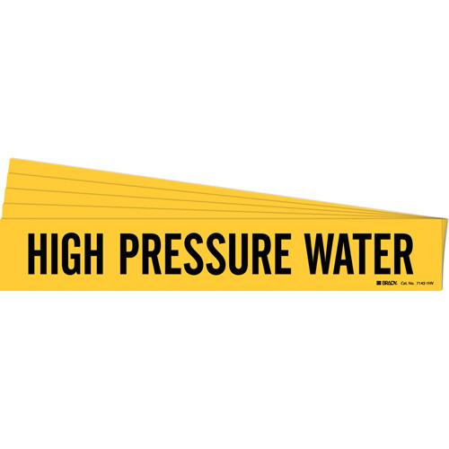 “High Pressure Water” Pipe Marker – Vinyl, Black on Yellow, 8″ – 20″, 4″, 24″, 3-1/2″, English, Self-Adhesive