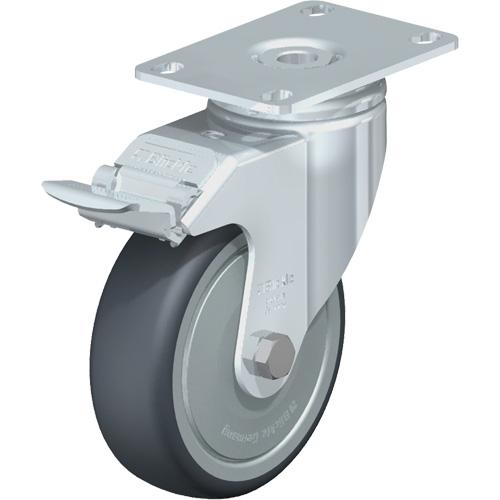 High-Quality Caster – 4″ (101.6 mm), 240 lbs. (108 kg.), Thermoplastic Rubber-Elastomer, Swivel with Brake, Steel, 1-1/4″ (31.75 mm), 1-3/4″ x 2-13/16″ (44 mm x 71 mm) – 1-3/4″ x 3-1/16″ (44 mm 78 mm)