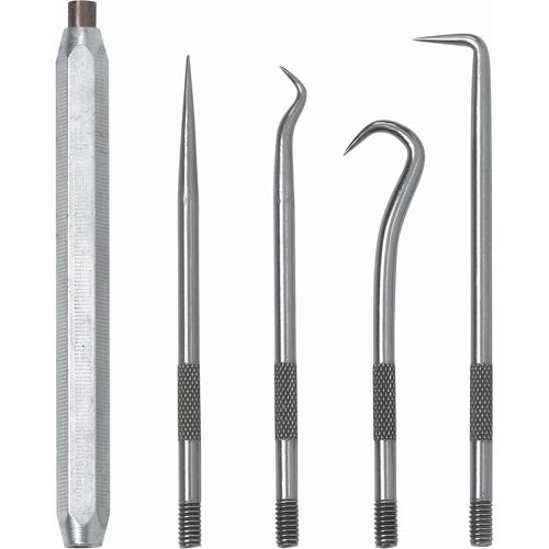 - Four heat-treated, high carbon steel picks: "O"-ring pick, 90°, straight and hook
