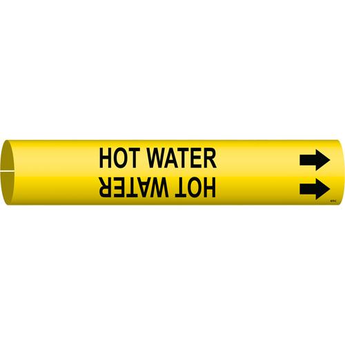 “Hot Water” Pipe Marker – Plastic, Black on Yellow, 2-1/2″ – 3-7/8″, 2″, 2″, 1-1/4″, English, Snap-On