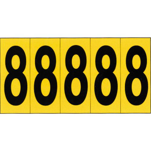Individual Adhesive Number Markers – 8, Black on Yellow, 3-7/8″, Numbers, 5