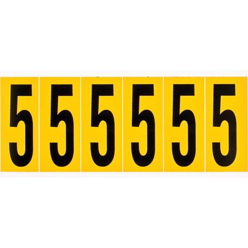 Individual Number and Letter Labels – 5, Black on Yellow, 3″, 6