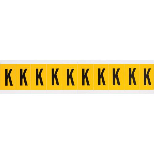 Individual Number and Letter Labels – K, Black on Yellow, 1″, 10
