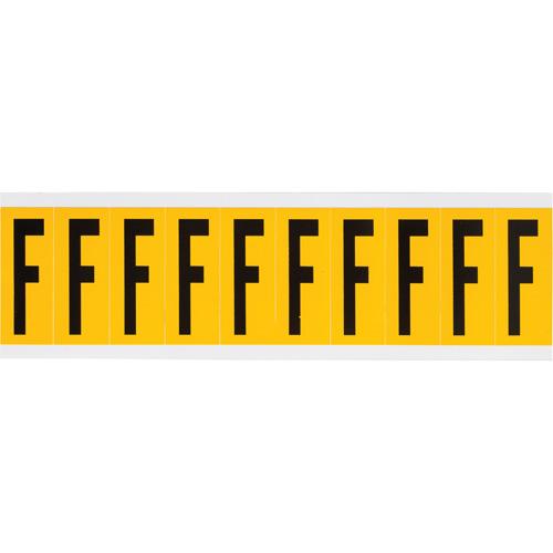Individual Number and Letter Labels – F, Black on Yellow, 2″, 10