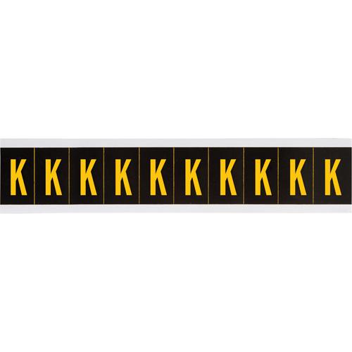 Individual Number and Letter Labels – K, Yellow on Black, 2″, 10