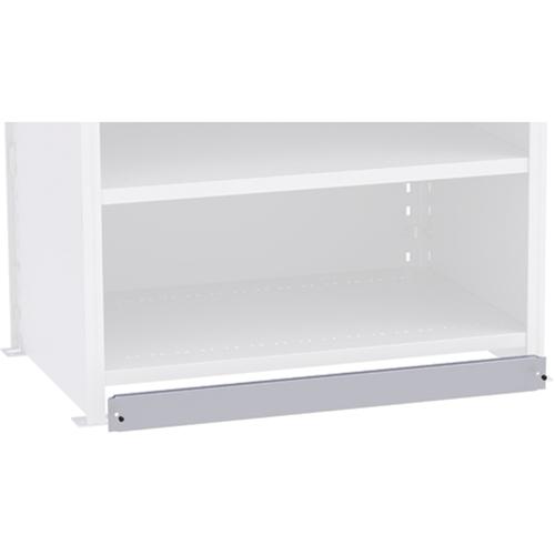 - Placed at front of a shelf and used to close off bottom of shelving unit to prevent items from falling or rolling off