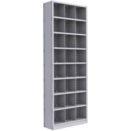 Interlok Shelving Unit – Starter, 9, 800 lbs., Steel, 36″, 12″, 18″, 24″, 100″, Boltless, Closed, No, Light Grey, 24