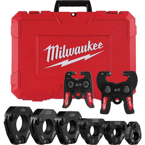 (1) 1/2" IPS-P Pivoting Press Ring for M18™ & M12™ FORCE LOGIC™ Press Tools; (1) 3/4" IPS-P Pivoting Press Ring for M18™ & M12™ FORCE LOGIC™ Press Tools; (1) 1" IPS-P Pivoting Press Ring for M18™ & M12™ FORCE LOGIC™ Press Tools; (1) 1-1/4" IPS-P Pivoting Press Ring for M18™ FORCE LOGIC™ Press Tools; (1) 1-1/2" IPS-P Pivoting Press Ring for M18™ FORCE LOGIC™ Press Tools; (1) 2" IPS-P Pivoting Press Ring for M18™ FORCE LOGIC™ Press Tools; (1) X4 Ring Jaw for M18™ FORCE LOGIC™ Press Tools; (1) X5 Ring Jaw for M18™ FORCE LOGIC™ Press Tools; (1) Hard Carrying Case