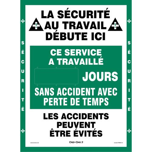 - Displays count days without an accident in green, and if a lost time accident occurs, set the display back to red until you meet your new safe-days goal