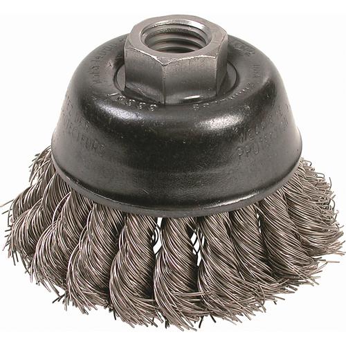 Knot Wire Cup Brushes – High Speed Small Grinder – 2-3/4″, 7/8″, 0.014″, Stainless Steel, 5/8″-11, Steel, 14000