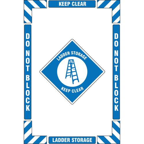 “Ladder Storage” Floor Marking Kit – Flat, English with Pictogram, Vinyl, Adhesive, 16″ X 24″, “Ladder Storage Keep Clear Do Not Block”