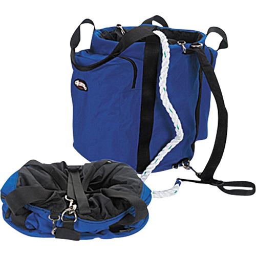 Water Resistant rope bag, will keep your ropes dry and oil free, 2 outside pockets for carabiners and gear, with drawstring closure system and transportation handles;