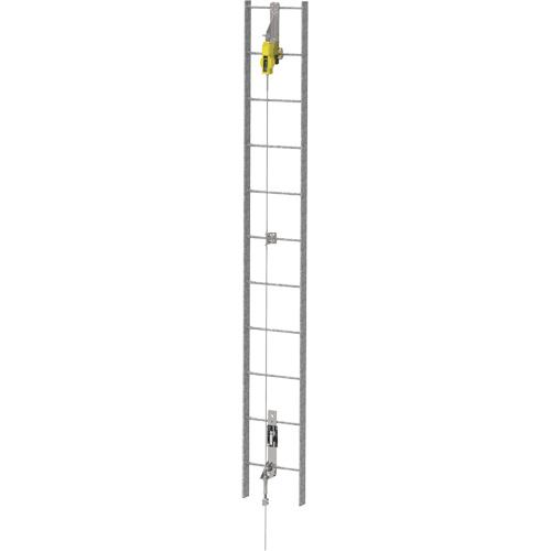 - Allows for hands-free movement up and down the entire height of the fixed ladder, eliminating the need to disconnect and find new tie-off points while ascending or descending the ladder