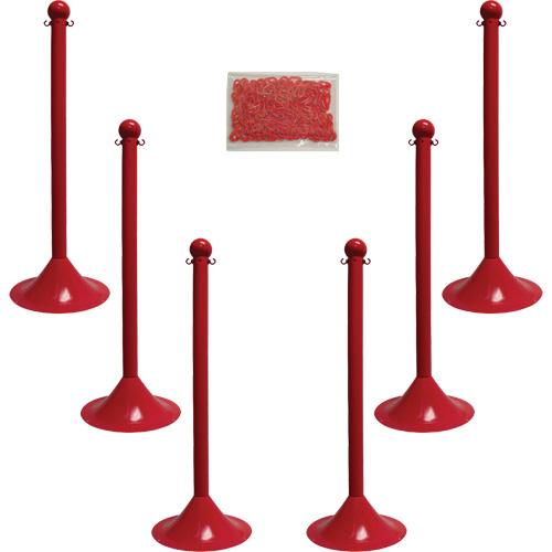 - Includes: (6) Stanchions, (1) 50' of 2" Plastic chain