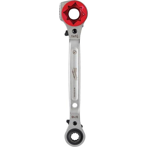 Lineman’s 5-in-1 Ratcheting Wrench with Milled Strike Face – 11-1/4″, 3/4″/1″/1-1/8″, Ergonomic, Forged Steel, 2.1″, 2.17″