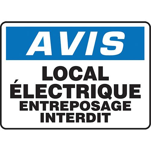 | Legend | Avis; Local Électrique Entreposage Interdit |