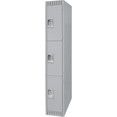- Three zinc-plated coat hooks and one shelf included with single and double tier lockers