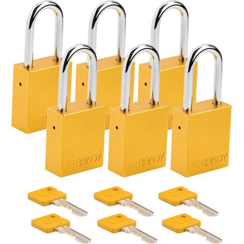 Lockout Padlock – Safety Padlock, 1-1/2″, 1/4″, 1-1/2″, Aluminum, Steel, Yellow, Keyed Different, 1-4/5″, 2