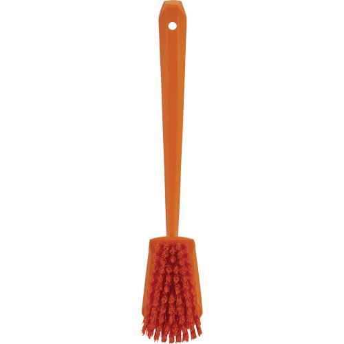 - Angled bristles are stiff, helping to scrub at a distance