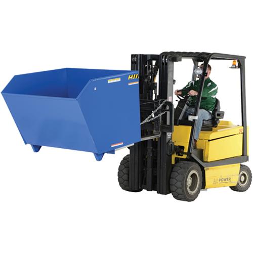 - Dumping with a fork truck is quick and simple, a cable is pulled from the seat of the fork truck to dump the hopper