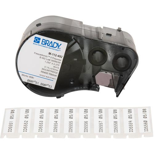 Low Temperature Label Maker Cartridge – Polyester, Black, White, 0.375″, BMP® 51/BMP® 53, Refrigeration, Matte, 360, 0.375″ H x 1.25″ W