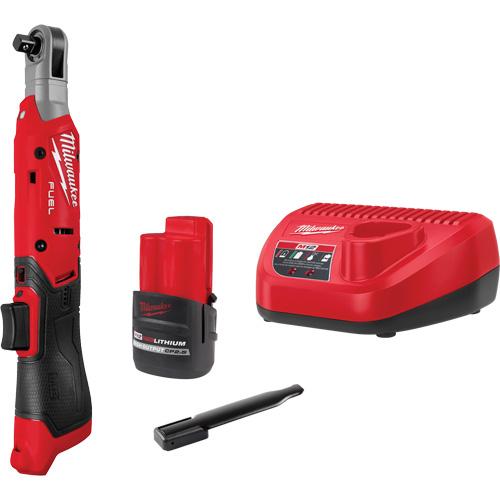 M12 FUEL™ Ratchet Kit – 12V, Lithium-Ion, 3/8″, 400 RPM, 70 ft-lbs., Ratchet; Battery; Paddle Trigger Cap; Button Trigger Cap