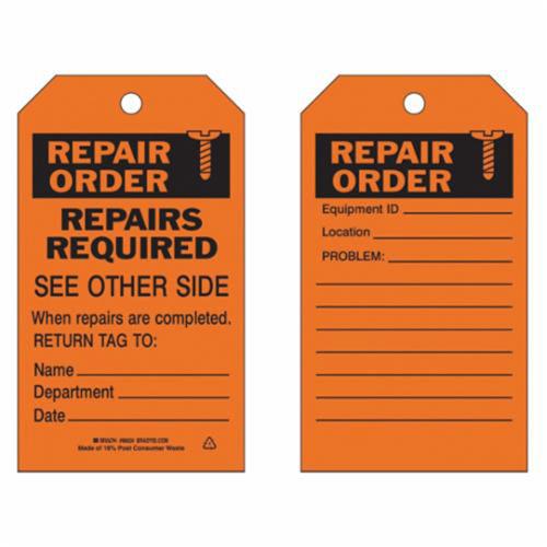 Material Control Tags – Polyester, English, 4″, 7″, 10, Black on Orange, Repair order, Not Laminated