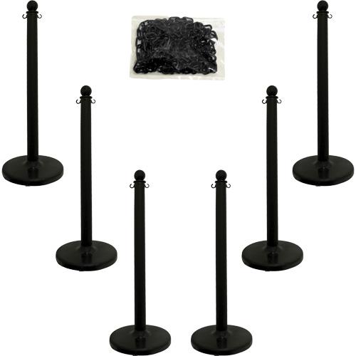 - Includes: (6) 40" Stanchions, (1) 50' of 2" Plastic chain