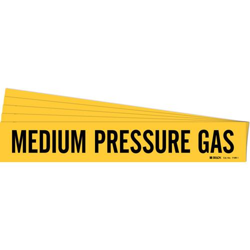 “Medium Pressure Gas” Pipe Marker – Vinyl, Black on Yellow, 2-1/2″ – 7-7/8″, 2-1/4″, 14″, 2″, English, Self-Adhesive