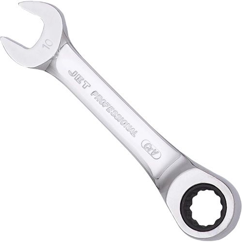 Metric Ratcheting Stubby Combination Wrench - 010-LXDA443 - 10 mm, Polished, Chrome Vanadium, Flat quantity