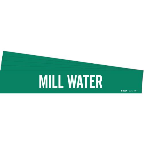 “Mill Water” Pipe Marker – Vinyl, White on Green, 2-1/2″ – 7-7/8″, 2-1/4″, 14″, 2″, English, Self-Adhesive