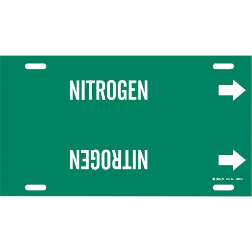 “Nitrogen” Pipe Marker – Plastic, White on Green, 8″ – 9-7/8″, 10″, 24″, 2-1/2″, English, Strap-On
