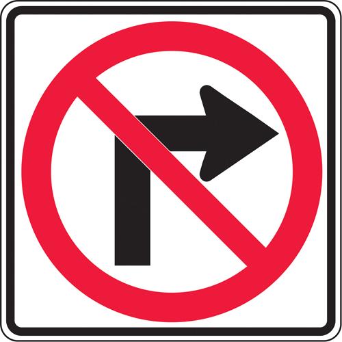 No Right Turns Traffic Sign – Aluminum, 24″, 24″, Bolt-On, Pictogram, Traffic, No Right Turns Pictogram