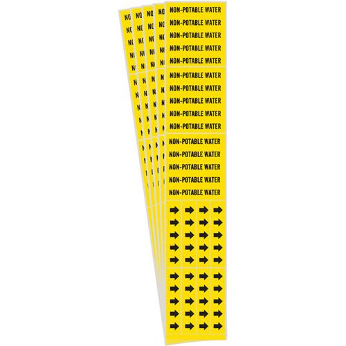 “Non-potable Water” Pipe Markers – Vinyl, Black on Yellow, 0″ – 3/4″, 2-1/4″, 2-3/4″, 1/2″, English, Self-Adhesive, 3