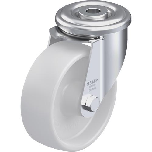 - Pressed steel swivel caster with bolt hole fitting
