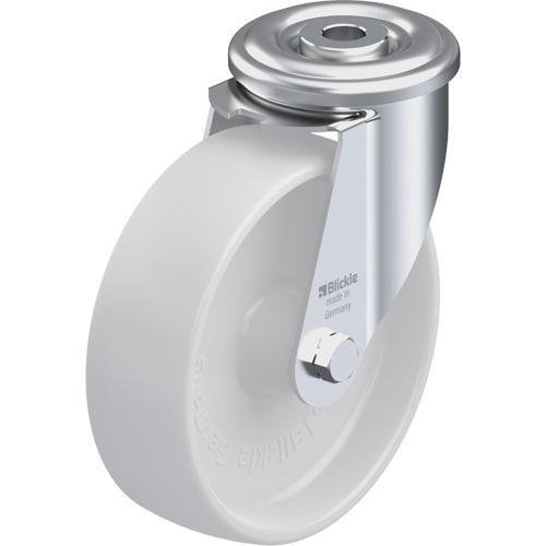 - Pressed steel swivel caster with bolt hole fitting