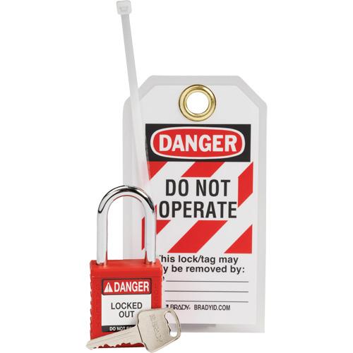 • Includes: (1) Lockout Tag (65520), (1) Nylon Safety Lockout Padlock (SDPL-RED-38ST-KD), (1) Zip Tie