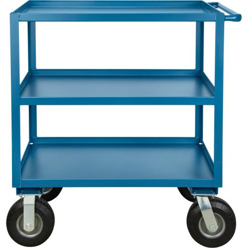 - Cart constructed from 14-gauge steel shelves welded to 1 1/2" x 1 1/2" x 1/8" steel angle posts